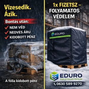 Az egyszer használatos fóliákkal szemben az Eduro raklaptakarók hosszú távon költséghatékony megoldást jelentenek. Az újrahasználhatóság nemcsak a környezetet kíméli, hanem csökkenti a folyamatos csomagolóanyag-beszerzés költségeit is.
